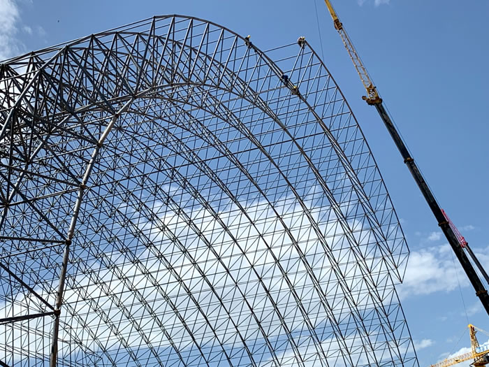 (2)网架加工前应对现场尺寸进行复测,确认无误后方可进行加工、安装;网架制作、运输、安装应遵守《空间网格结构技术规程》JGJ7-2010、《钢网架双鸭山螺栓球节点》JG/T 10-2009、《钢网架双鸭山螺栓球节点用高强度螺栓》 GB/T 16939-2016、《双鸭山钢结构双鸭山工程双鸭山施工规范》 GB50755-2012、《双鸭山钢结构双鸭山工程双鸭山施工质量验收标准》 GB50205-2020。